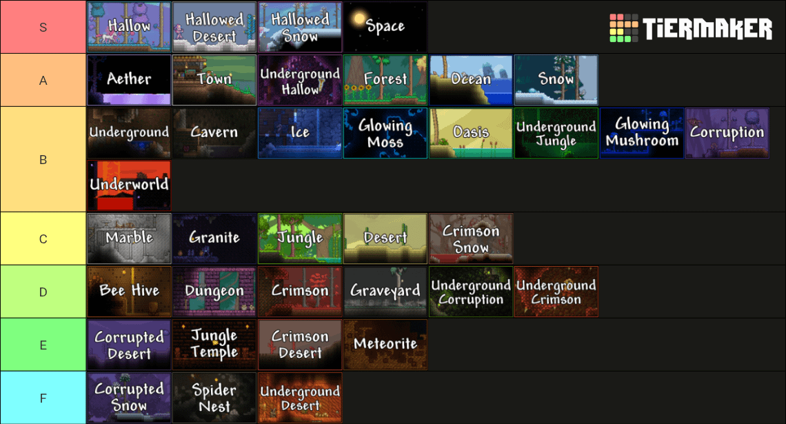 Why is the jungle in C tier imo it’s easily S from the loot and the music and the ATMOAPHERE shit my inner Yuri came out but its easily the best early game biome and close to the best endgame biome