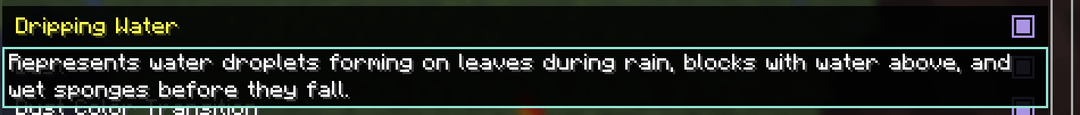 MattiDragon on January 20, 2026 1:12 pm I think internally different particles are used for when the droo is stuck and when it’s falling. For some reason dripstone also got its own copies of both, might have something to do with how thry spawn.