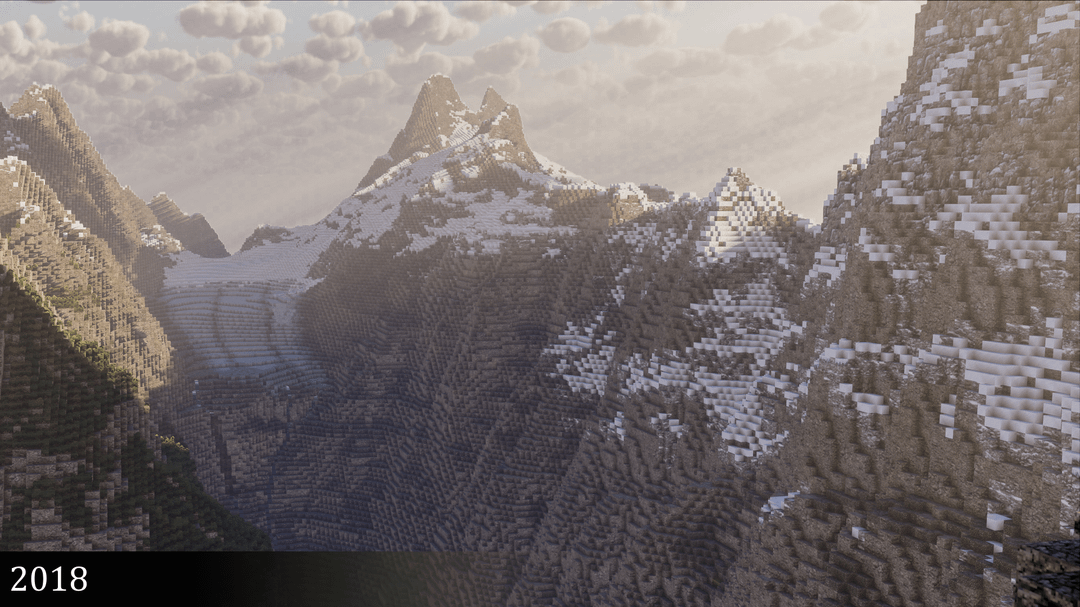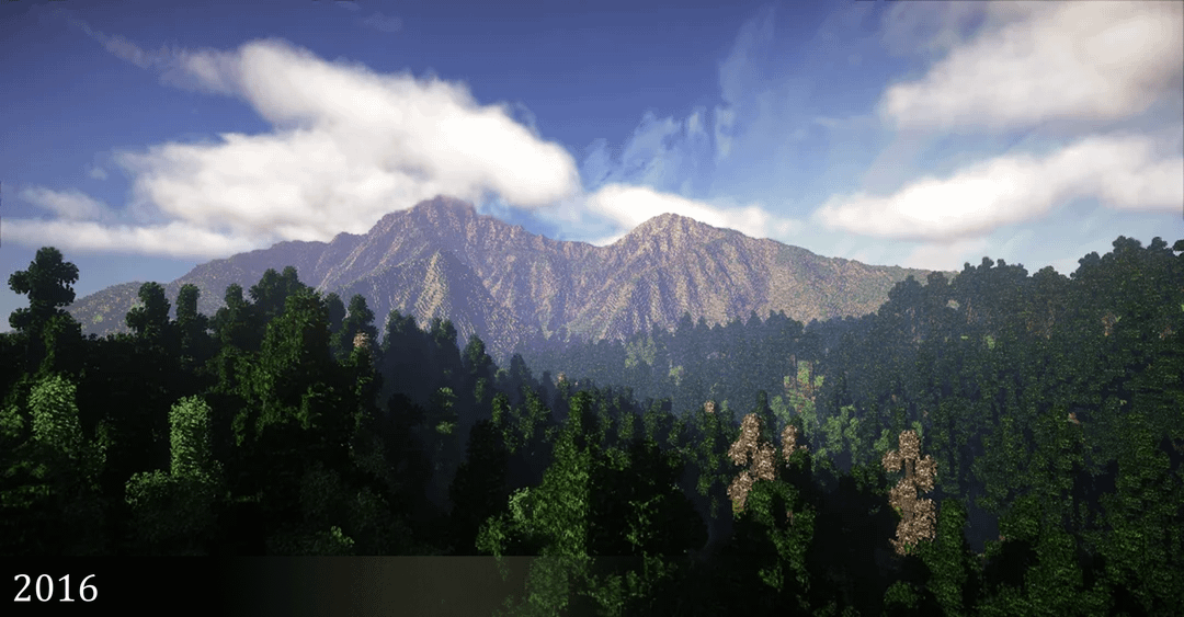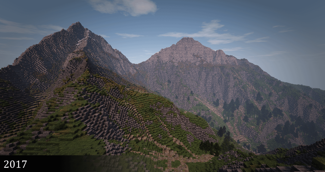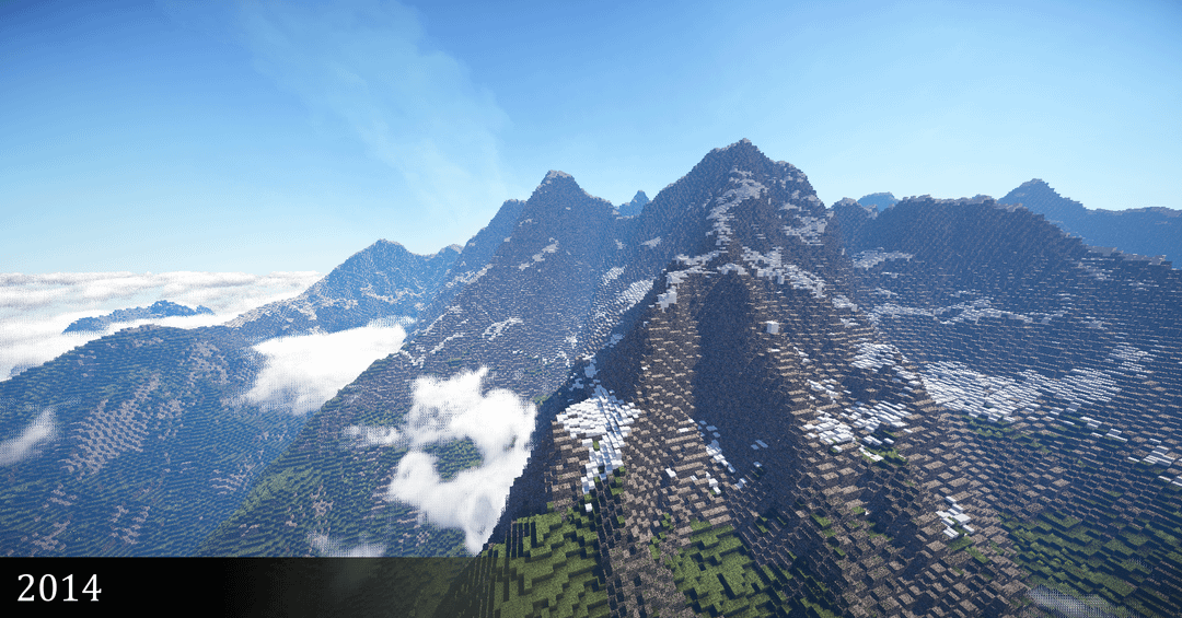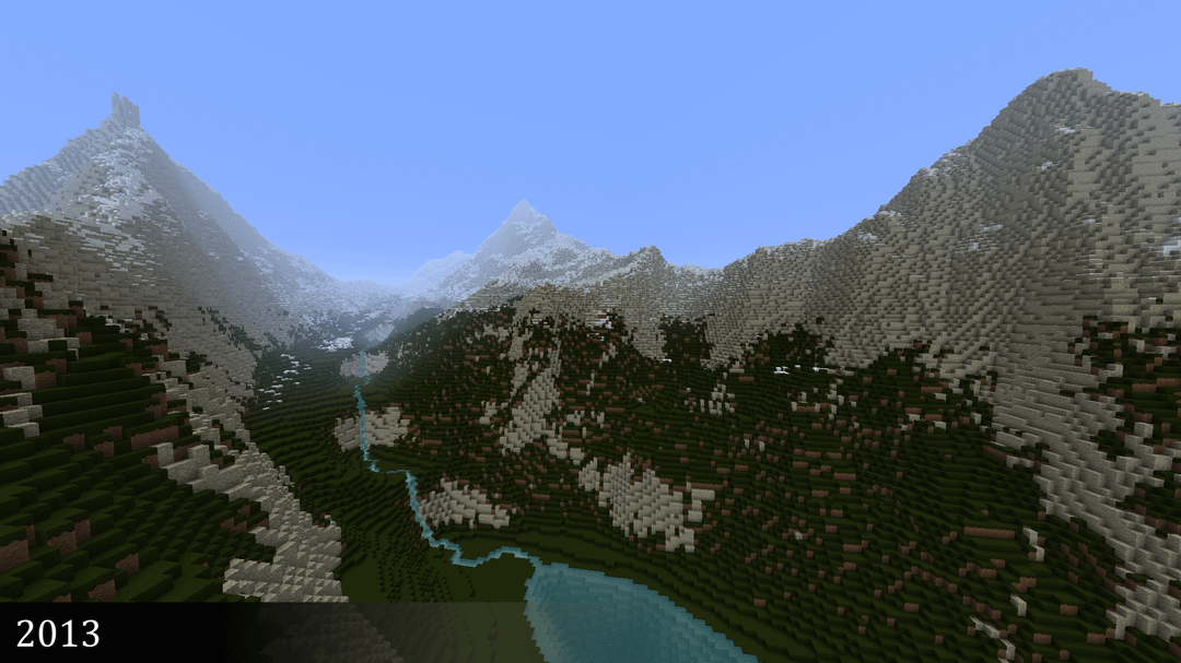 I’ve been making mountains in Minecraft since 2012 – here’s a shot from each year