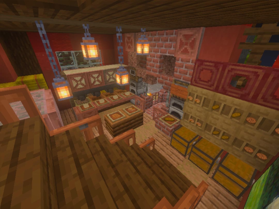 Pics 3-7: The second floor houses the shop's kitchen: a giant dough mixer, a mechanical oven, a conveyor belt and the copper golems working it all