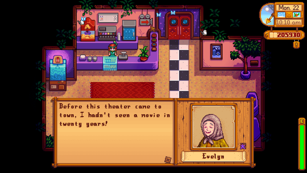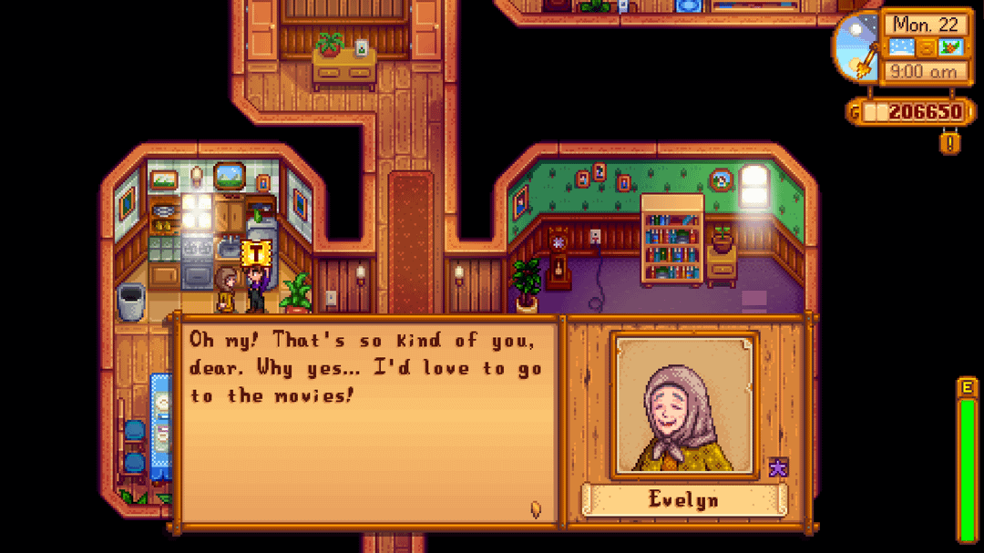 I spent most of the last few days finishing up the hidden bundle (this is my first playthrough), and I realized that I completely forgot Evelyn's birthday! So to make it up to her, I decided to take her to the movies as my first invitee, and I'm so glad I did; suffice it to say she had a wonderful time! 🥰