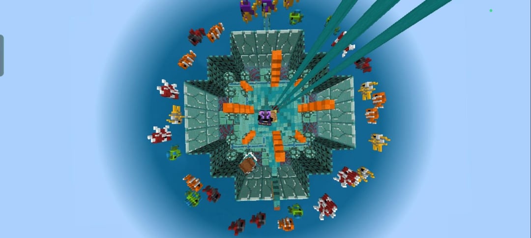 hi, so I started this project more or less 11 months ago, im student so I can't play all the time but I wanted a big decoration for this farm, 3/6 is inside the guardian and the AFK point and where I get the XP, and 4/6 is inside the monument, here is the crafting zone and the item sorters