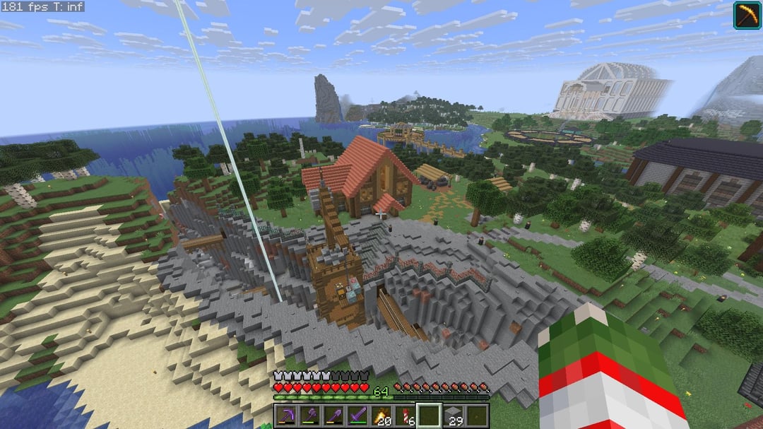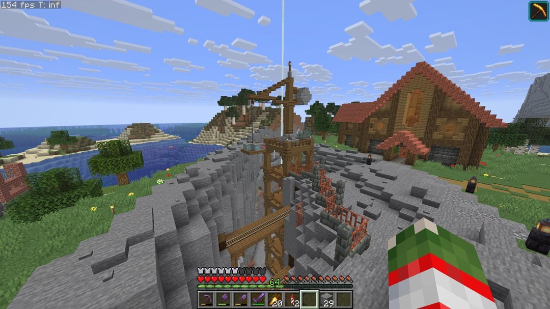 The Crane has a ladder that will take you all the way to bedrock but there’s also a bubble elevator inside the building for quicker access to the mines.