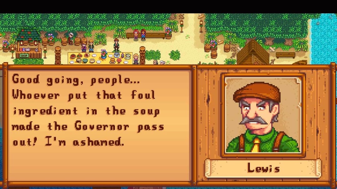 2. In my current game play I put Lewis underwear in the soup. I forgot I was carrying them in my hands and I gave him his underwear. He clearly thought some other villagers were pranking him.