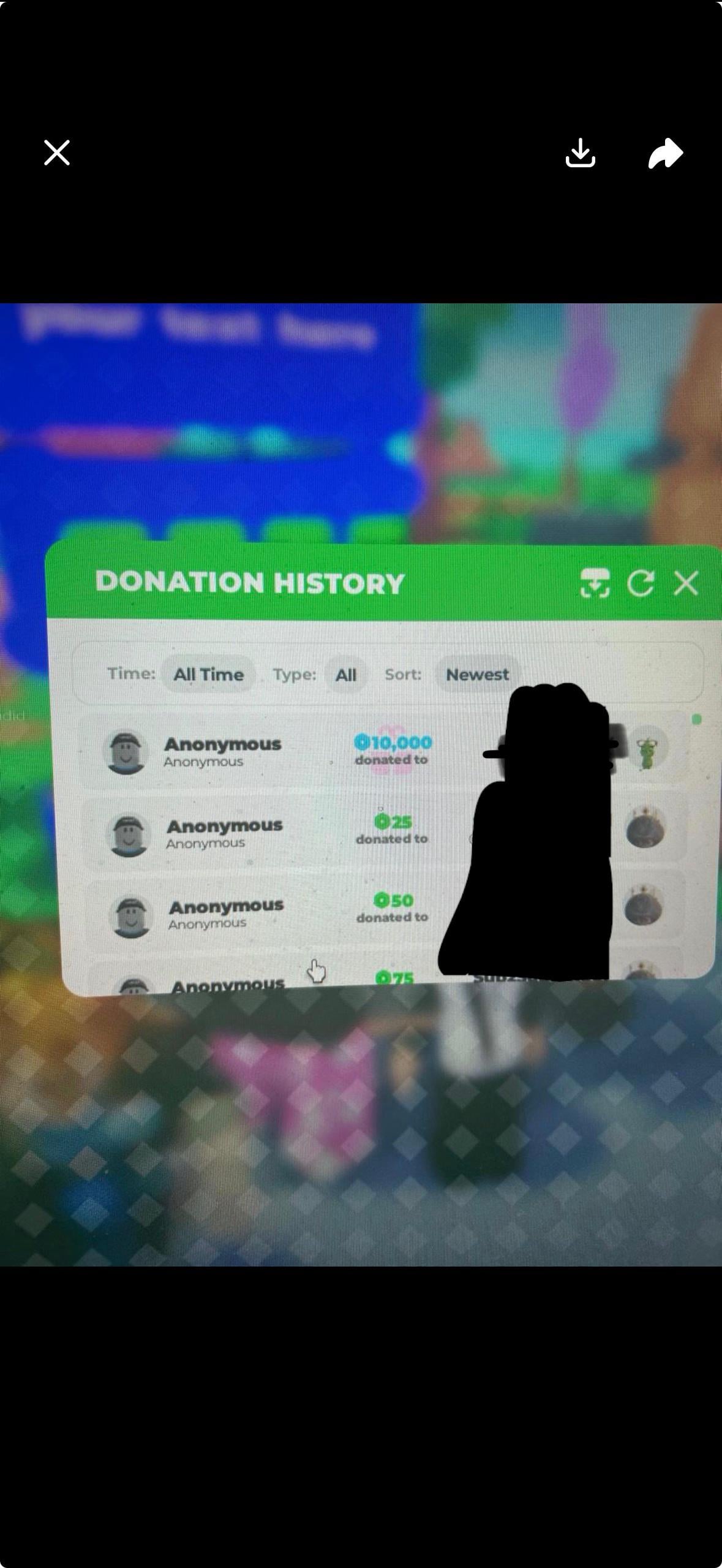 So you know how I got 5000 Robux stolen for my brother? Somebody really nice sent me two times more the amount. and I heard they’re a developer. I’ll see if they have any games but I’m not sure cause they donated an anonymous and they never gave me their Roblox account, but they are a very sweet person. It made my whole day because I felt like all of my hard work was wasted so I just really wanna say thank you and everybody who saw that post because it got a lot of views anime the top four of Roblox so thank you.