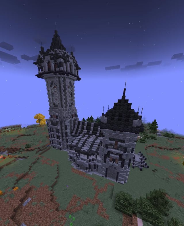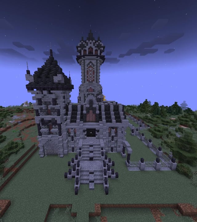 I'm doing an All The Mods SMP server with my friends and this is my vampire manor. I plan on expanding this build soon enough with the tall tower as the central point. Any feedback or advice would be appreciated, as I am still an inexperienced builder.