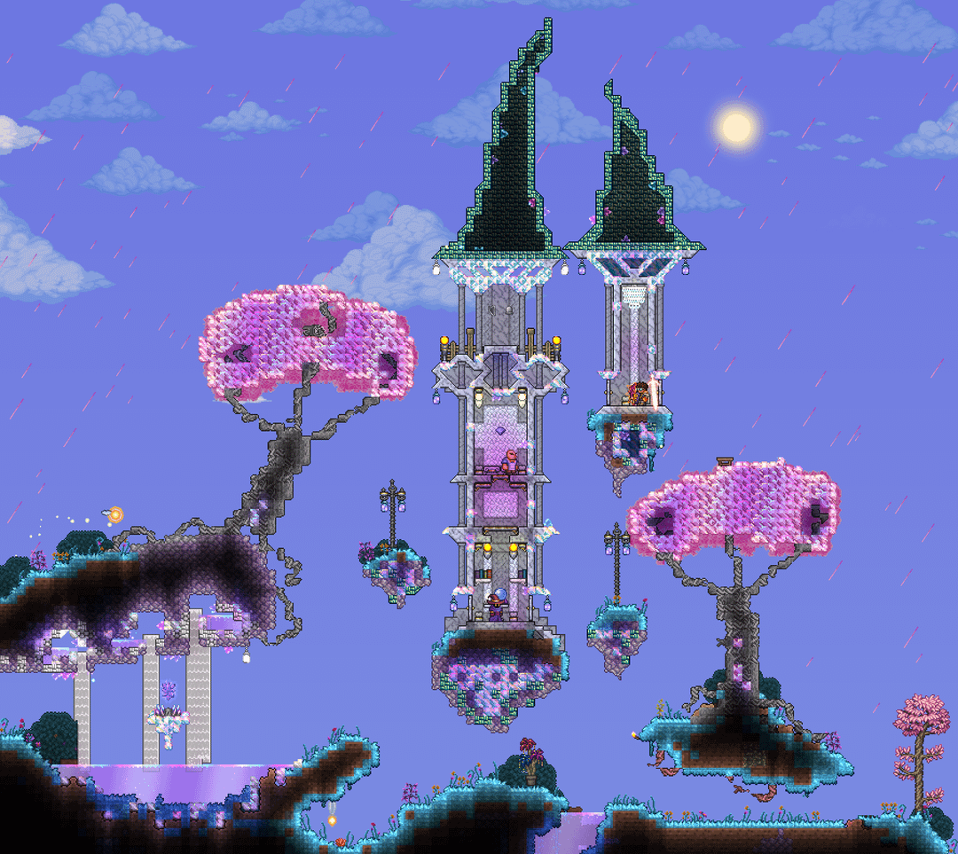 There are so many more builds that i have no screenshots of that will be forever lost to the corruption. Some builds are heavily inspired from others not claiming any original credit for anything. Missing builds for every boss + a couple biomes, my desert build and the rest of the 'starlight labs' plus a lot of screenshots were before decoration so unfortunately a lot of detail is lost for example the wings in the first image were resized and removed the extra claws and the vast majority of castle is undecorated and pre terraforming.