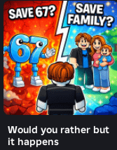 RandomTrooperw on February 15, 2026 3:37 pm I would rather save 67 because i don’t know who’s family is that