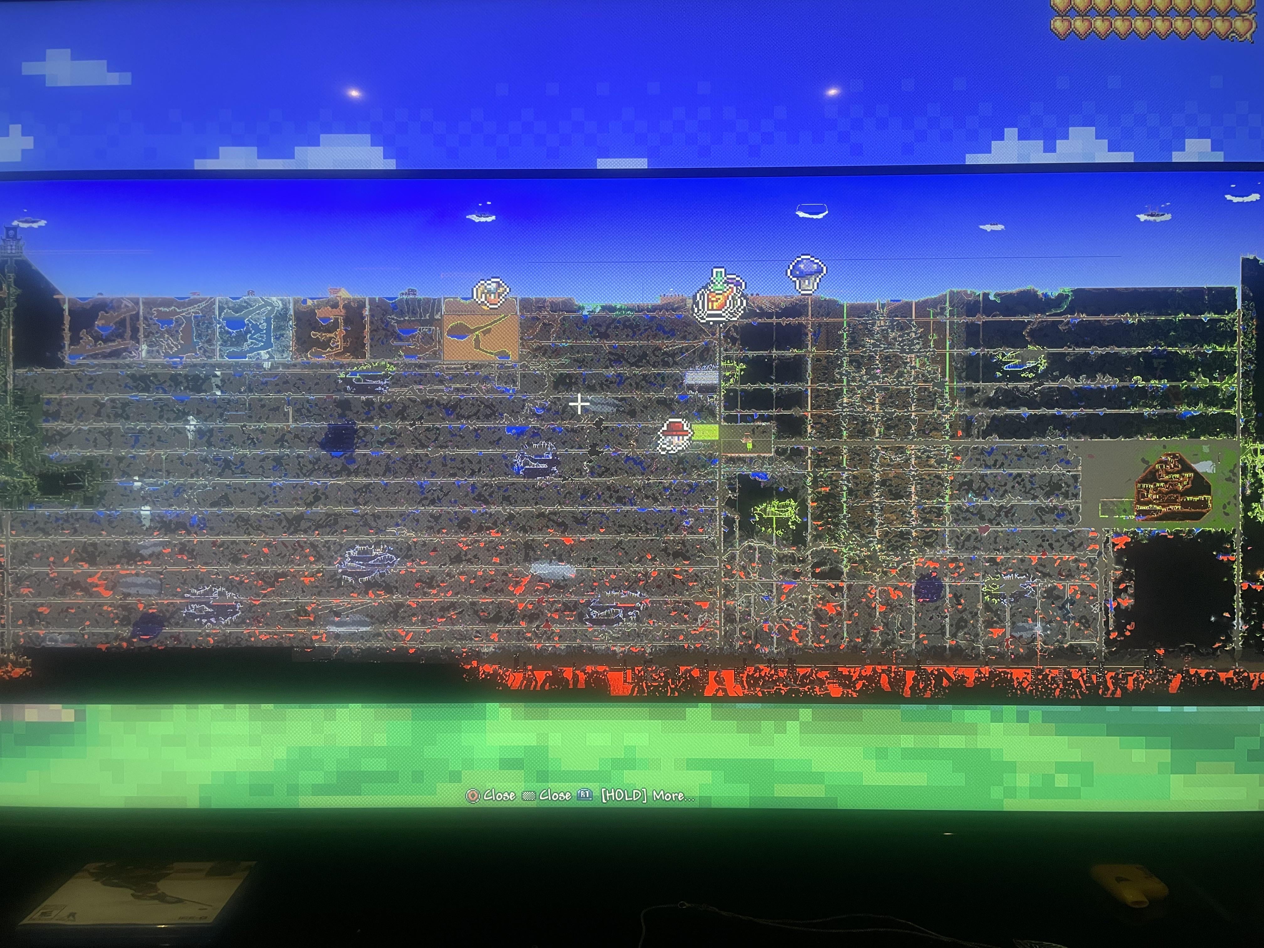 Started a world for the first time in 3 years and wanted to play the game really slow, didnt end up dealing with hallow and corrupt until post moonlord and ended up having to clentaminate 50% of the world, now the map looks cursed lol, gonna remember to take care of it sooner next time
