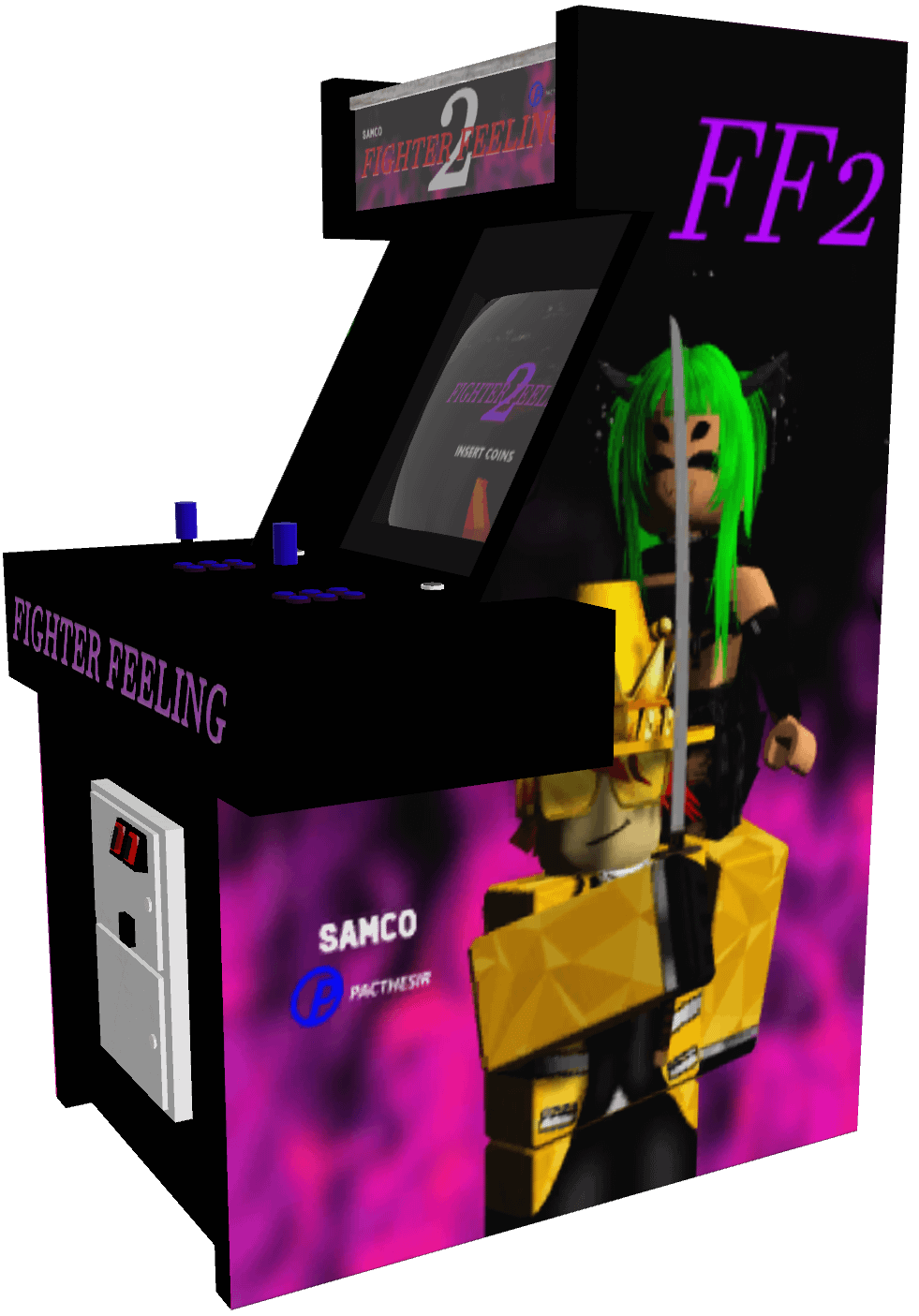 I made the art and the cabinet, it's a free model here: https://create.roblox.com/store/asset/121775740133751/Arcade-Fighter-Machine-Fighter-Feeling-2 I tried to make a 90s feeling arcade machine, I hope I did well by Boredguy532 ROBLOX