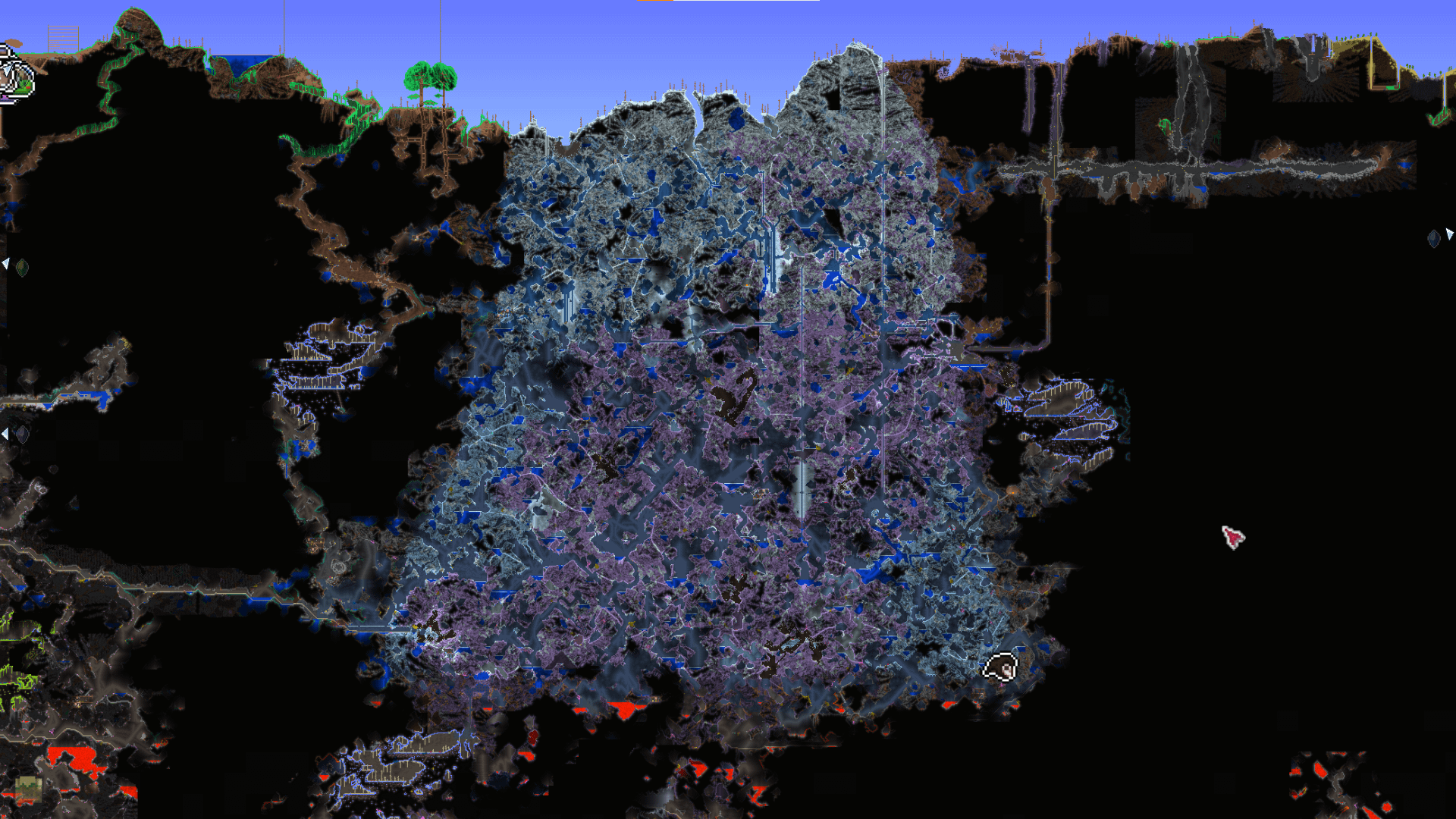 So you wanna use the Spelunker Potion in the ice biome to find chests and houses. It takes a long time to go horizontally across the screen, so instead you might consider buying a ton of bombs and just bombing straight vertical tunnels so you can see everything as you drop down with your spelunker potion