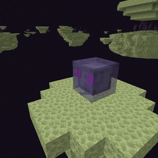 The Erebos Sludge (second mob) is a variant of the slime that sticks to blocks and rolls instead of hopping. It inflicts a "sludged" debuff that prevents teleportation, disables elytra, and decreases jump height.