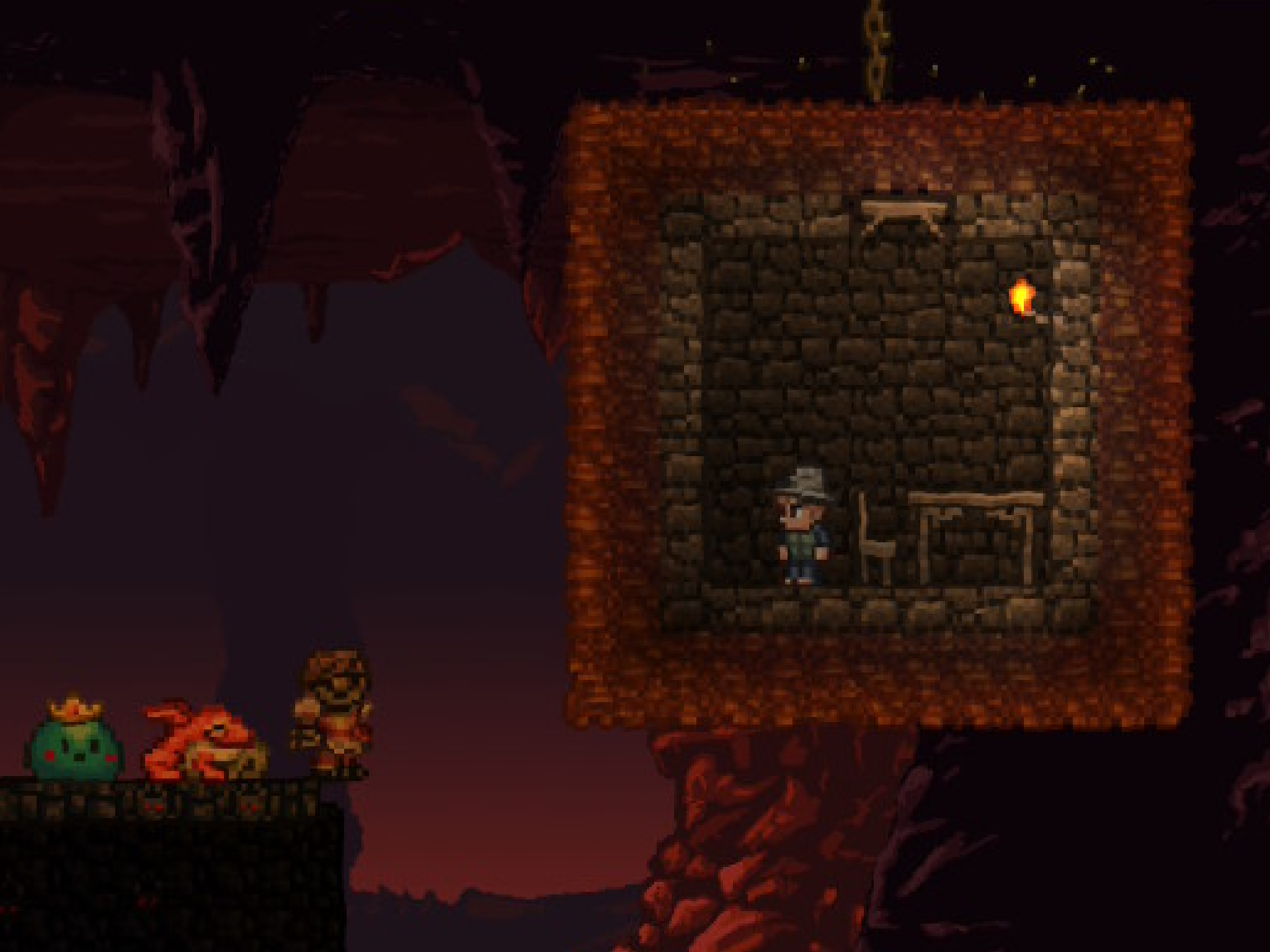 Blocks should be reversed- he’s walking around in a mudstone room that’s coated with poo on the OUTSIDE that you have to touch to interact with him lol