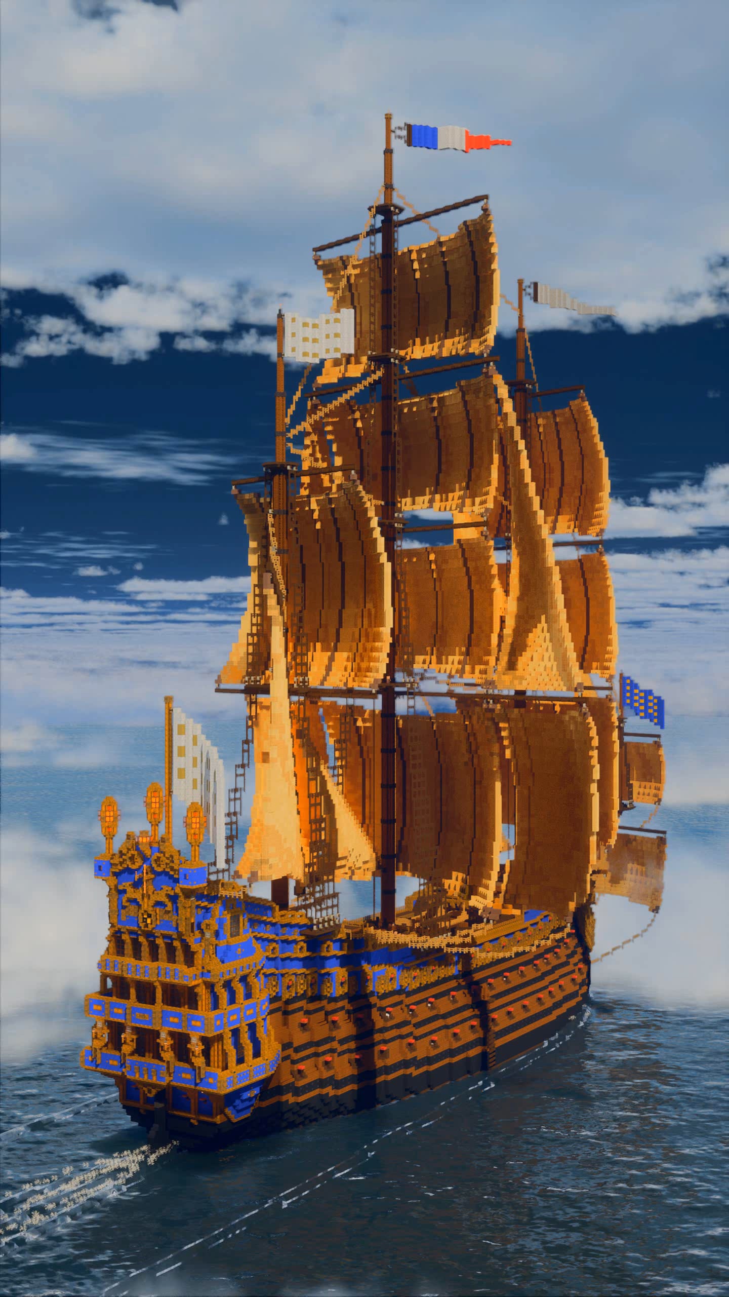 Hello, here is my latest project: the Soleil Royal, a first-rate ship of the line from the year 1670. In addition to the standard version of the ship, I have also created a version that features over 98 functioning TNT cannons, which you are seeing right now. Hope you like it.