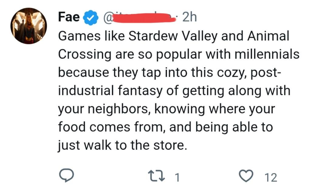 I can see that, and even agree. I think for me, it’s a control thing. In the real world, there is so much you can’t predict or prepare for, no matter how meticulous you are, and that’s something I definitely struggle with. But in a game like Stardew, Animal Crossing, or Story of Seasons, you’re the one in charge of creating your world, you have all of the control over your crops, your friendships, how you decorate, how you spend or save your money, etc. Sure, things can go wrong, but you can control and fix that too. It’s nice to have that little bubble that may not be perfect but it’s yours, and it’s a safe haven to go to when the world around you is spiraling beyond your control.