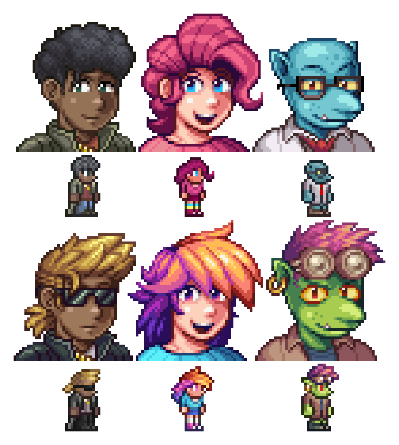 this is everything ive done so far, i redid most of the npcs portraits that i didnt liked so muchh, the shimmered ones were a lot of work but theyre gud enough, theyre still work in progress so i would rlly appreciate any opinions or suggestions for other npcs i could work on :3