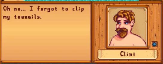 You haven’t clipped those little piggies in YEARS! He at least REMEMBERS to clip his toes, even if he remembers after he should clip them. Clint clips his toenails more than your farmer, put some RESPECT on Clint >:(