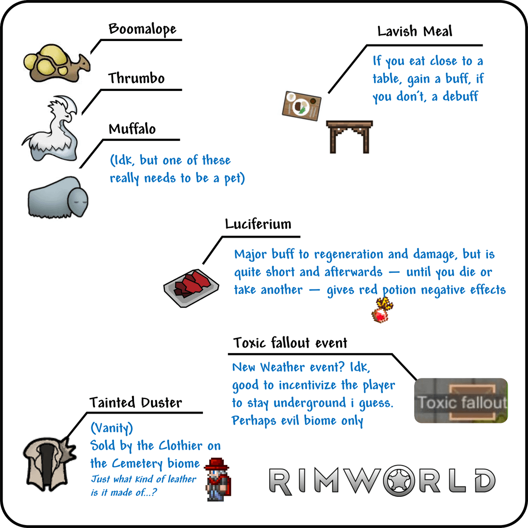 Rimworld eating near table because this seems like exactly the type of petty debuff that would fit with terraria’s luck system.