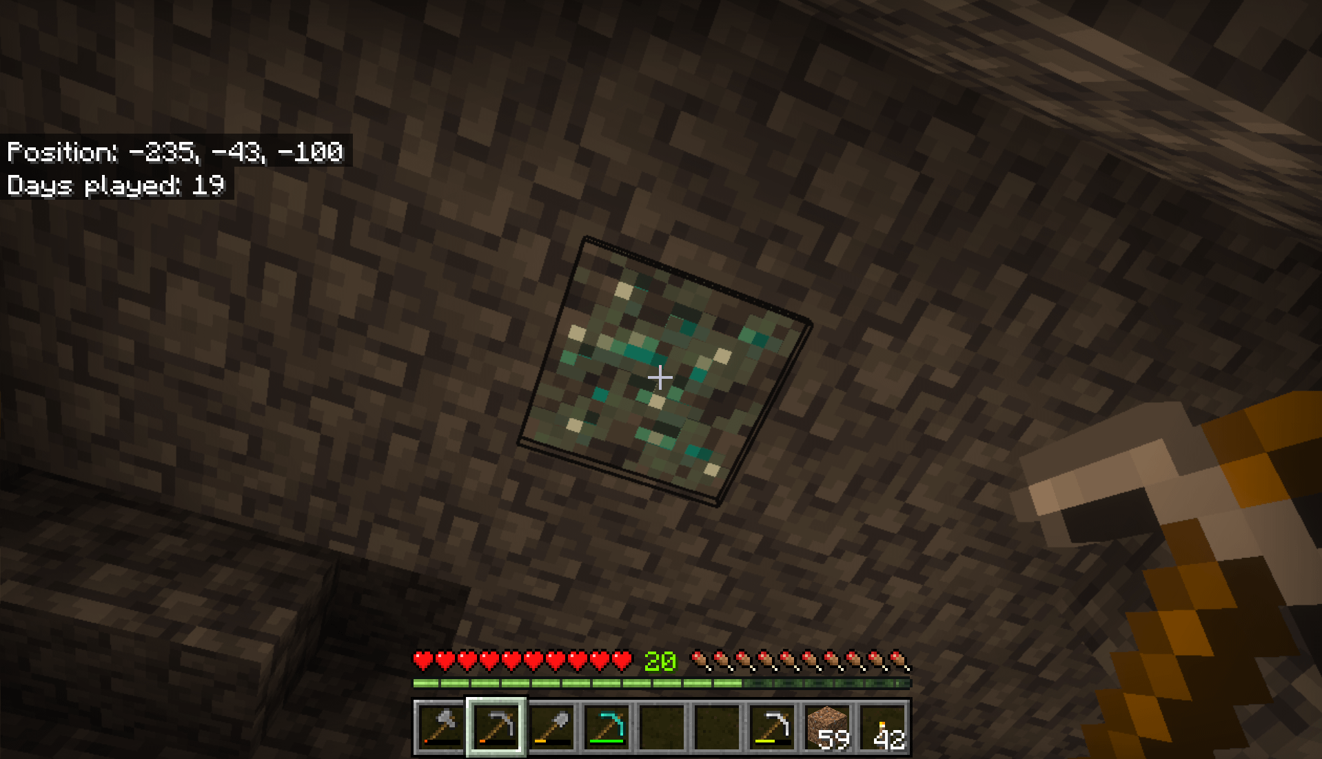 Covered with lichen? on the ceiling? this diamond did NOT wanna be found (not to mention he was 100% by himself so I wonder if he was exiled-)