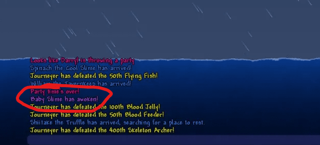 I believe the way the “[X] has awoken!” or “[X] has arrived” messages work is they grab whatever the latest spawned entity is and put that into the chat. Usually this is fine because that latest spawned entity is the boss or NPC it’s supposed to be, but if that fails to spawn for whatever reason (mob cap probably), it’ll just show up as a random mob. I think that’s where you get the “Black Slime has arrived!” from that one Gromek999 video, for example.