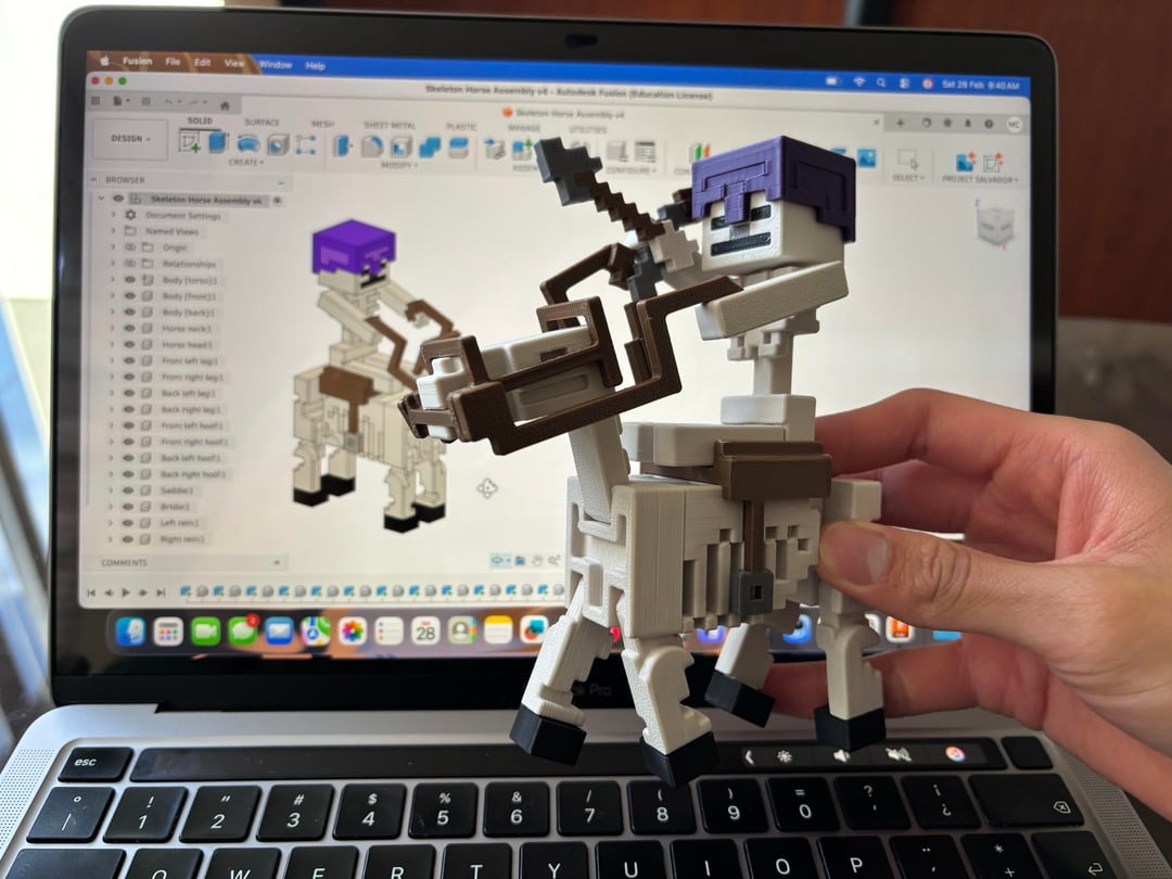 I designed and 3D printed a Skeleton Horse Trap from Minecraft. It’s one of the rarest mobs/events in the game, and I always thought it was awesome. I wanted to have one in real life, but the official toy is really expensive, so I decided to design and print my own instead.