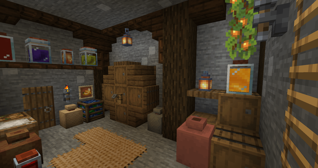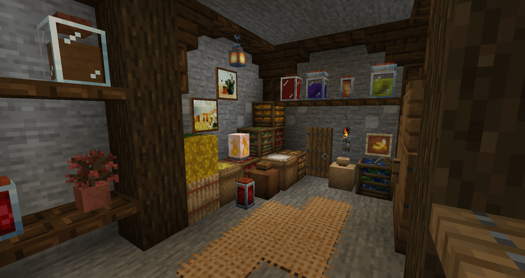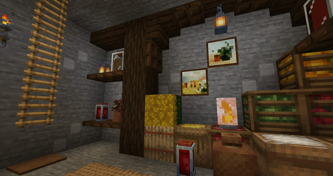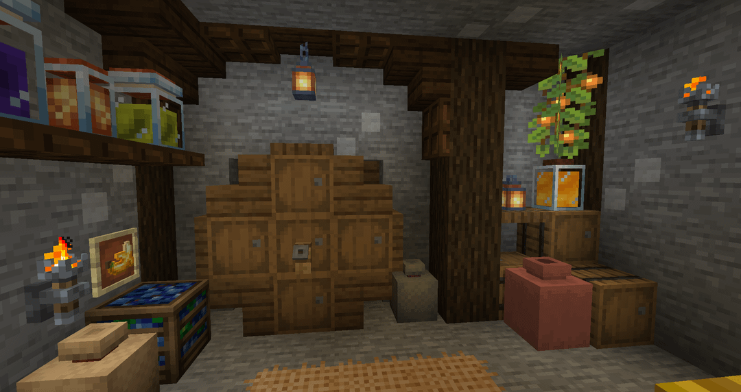 First time playing with Farmer’s Delight and some other mods, and I didn’t expect how much they’d inspire me to build cozy interiors. Here’s my small survival pantry. by ConcreteBerry Minecraft Minecraft Builds