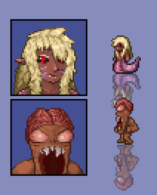 a quick study of Terraria’s portrait style (feat. the lamia and the face monster) by goatnorth Terraria