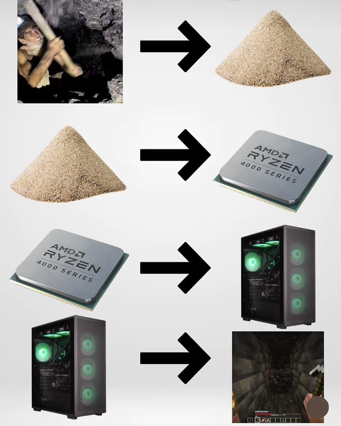 Now show him mining redstone and using it to build a redstone computer