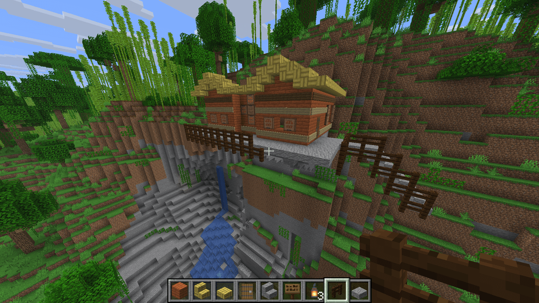 I'm trying to build a village that sort of hangs from a cliffside. I think it looks kind of weird though. Any suggestions? by ThatMustashDude Minecraft