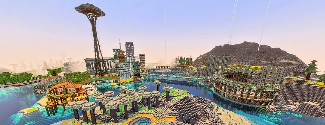 Scenes from my Volcanic Cityscape Survival Mode build