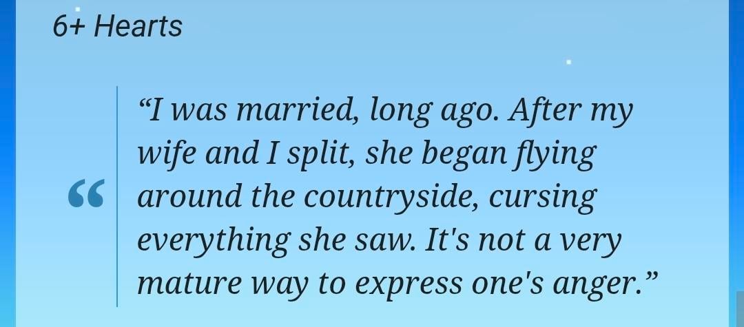 But you also raise fair points, I almost always gloss over the fact the wizard was married before. But maybe I wanna be a witch 🤣