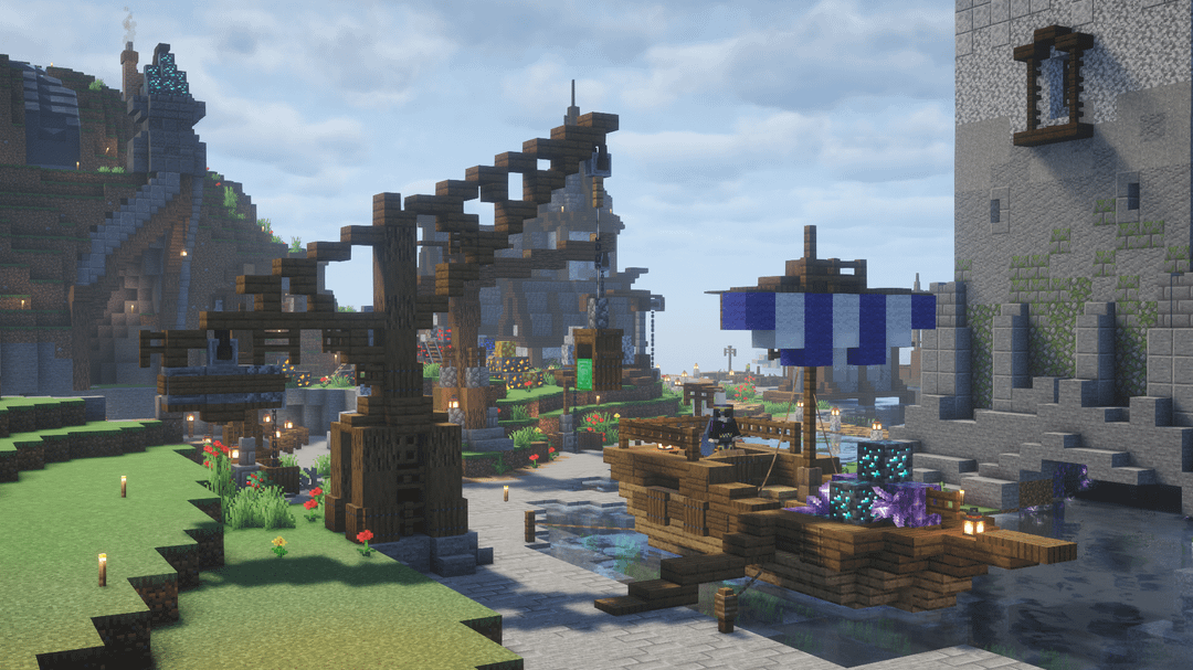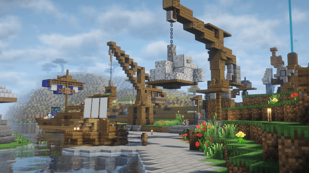 The village is SO close to being finished, and recently I finished the more industrial side of it. The mining area was there for a while, but it always felt really empty, so l decided that a small harbour would be the perfect transition between the village and the river.