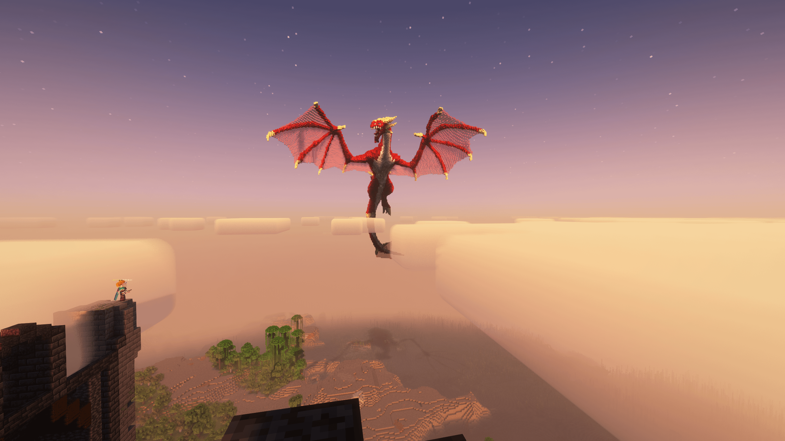Perched just beyond the city walls I tried my hand building this giant dragon. It took me around 18 hours of collecting materials and building. I would say its totally worth it though. I might show some other things I've built on this server too.