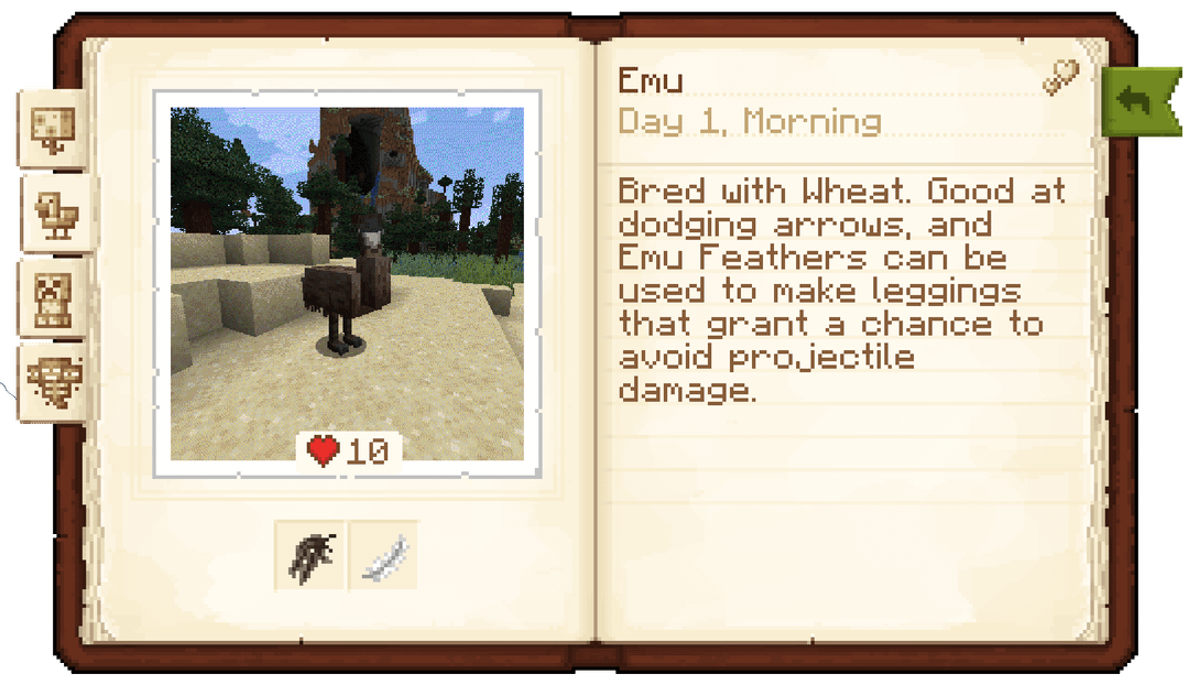 Field Guide is a mod about discovery through exploration! Find cool plants and animals, and scan them with your spyglass to add them to your own personal Field Guide!