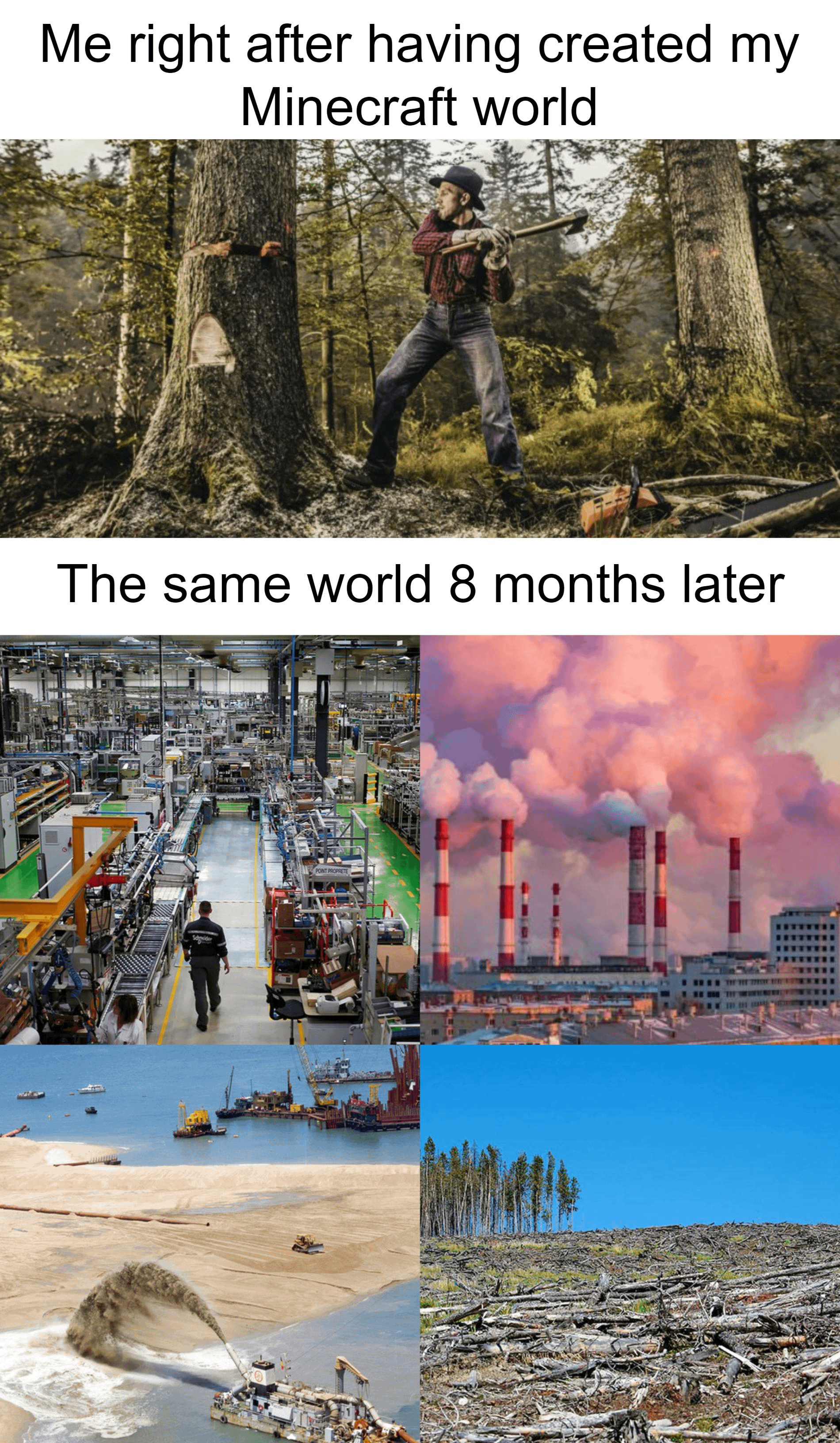Tf fuck u mean deforestation? I already made late game automated tree farm for bedrock