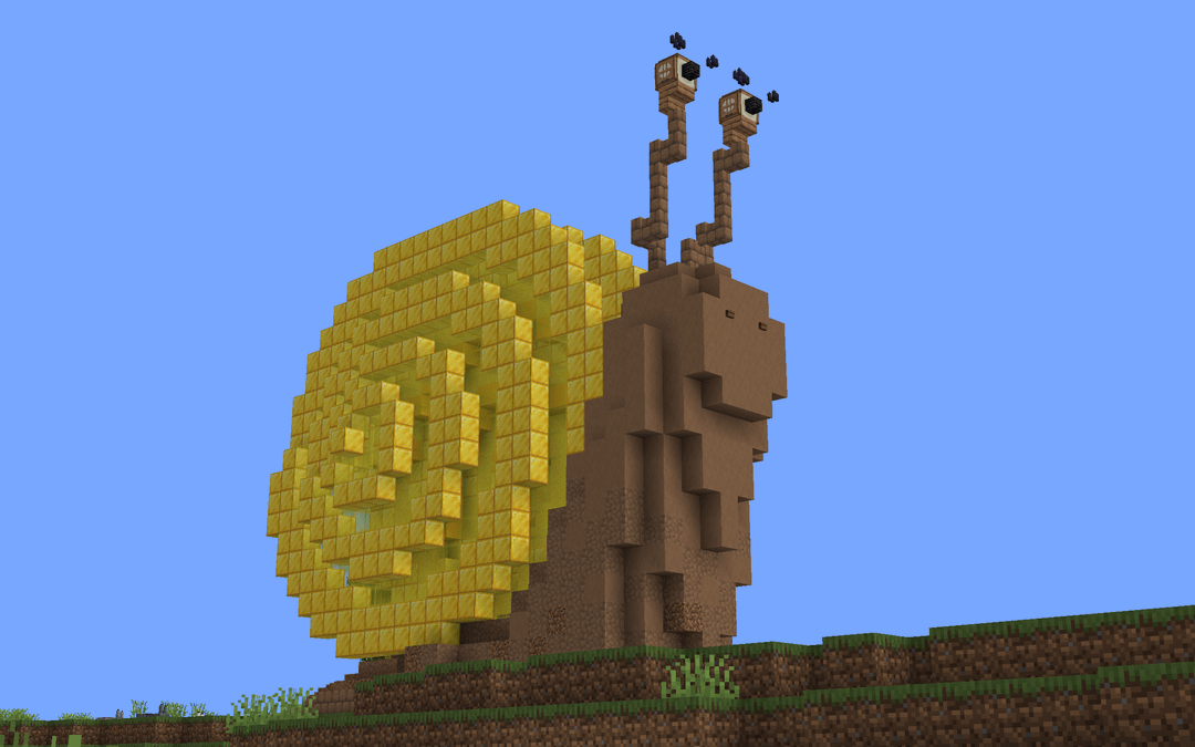 Reminds me of that Adventure Time episode where they help a snail/slug with dating. I dig the build, and I’d love to see a tree house resting atop the shell 😃