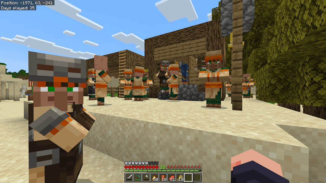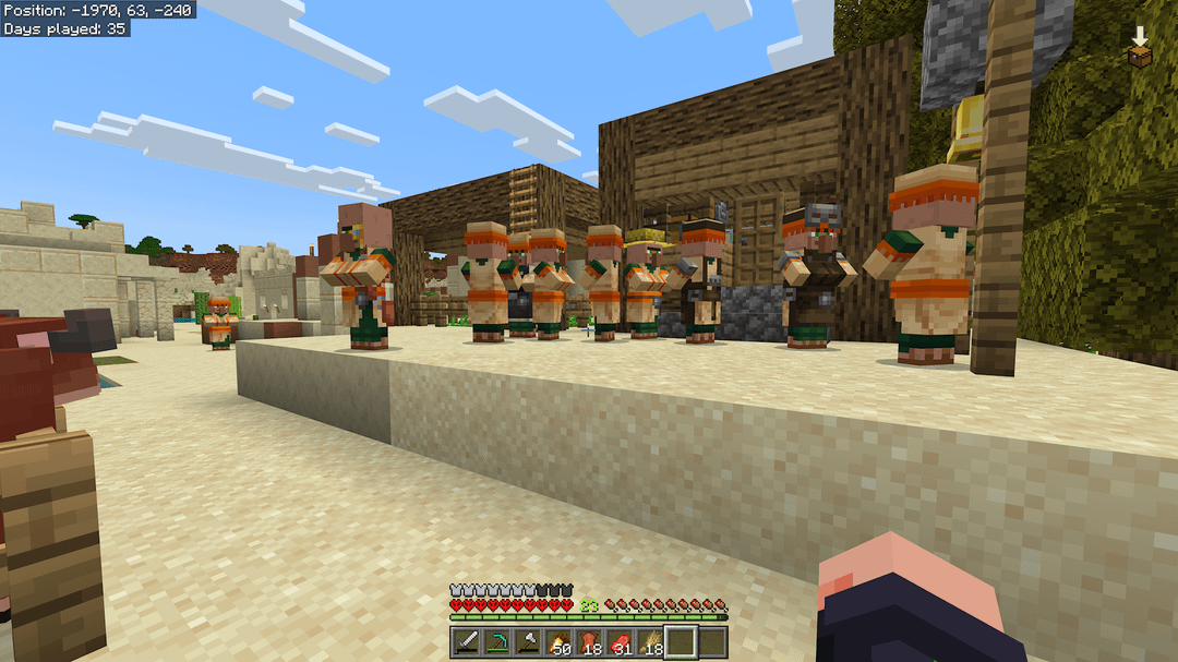 I like to find the spot the villages gather and do decorations, make it look more like a park. A shovel with a checkered pattern goes a long way