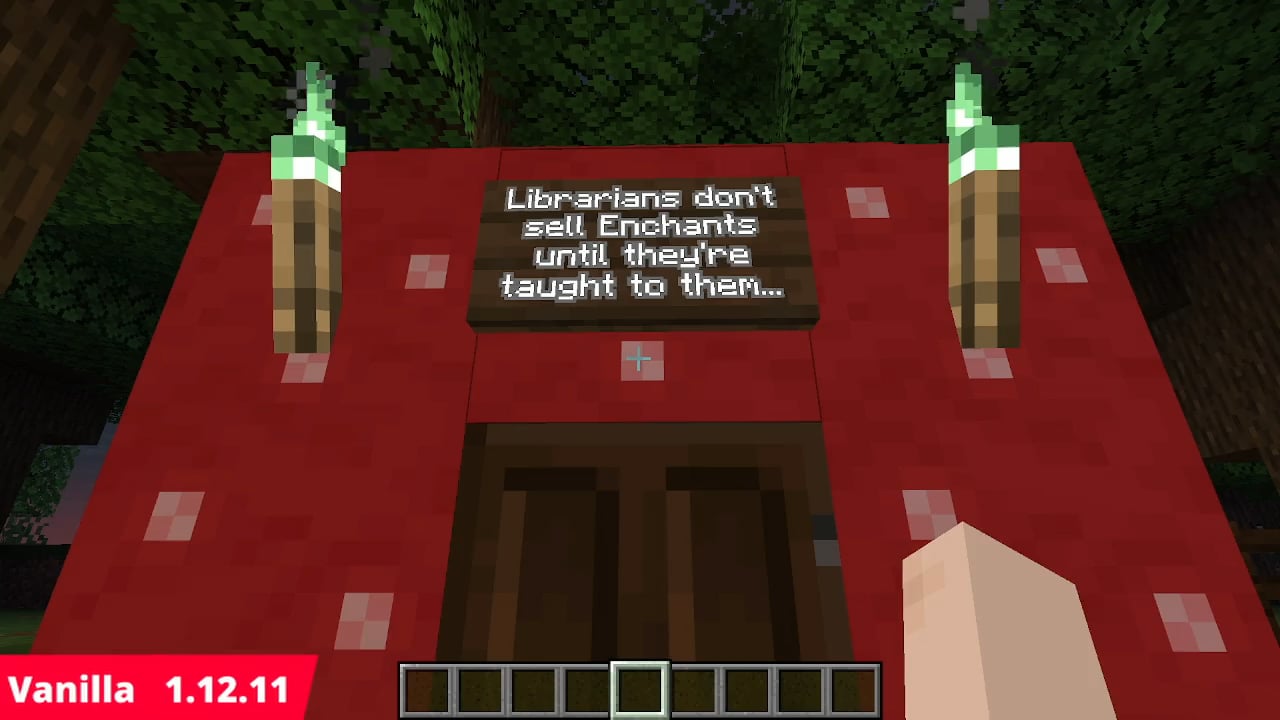 \Seriously! I've been wanting the ability for players to chose who sells what enchantment since 2011) Testificates – 2011, Beta 1.9 Prerelease- came 1st. Enchanting Table -2011, Beta 1.9 Prerelease 3- 2nd. Enchantments -2011, Beta 1.9 Prerelease 4- 3rd. Trades were actually added in 2012 12w21a. Since then, every single player world and multiplayer server I've played/hosted on, I was the human 'Librarian'. Spending literal weeks to grind out every possible max level enchantment from villagers. In the old days, 1.13 and before, this required a literal week, 24 hours a day of a villager breeder running, coming back from work, and 'removing' all 'non-desirable occupations' and then seeing if the desired Enchantments would be traded. On average this cost several hundred villager deaths. Currently? It takes me, on average, over 2,000 lectern place/breaks to RNG my way to getting all tradable enchantments. Not…fun…or…rewarding.