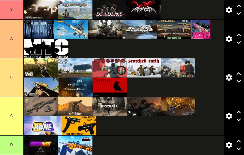 My roblox fps game tier list