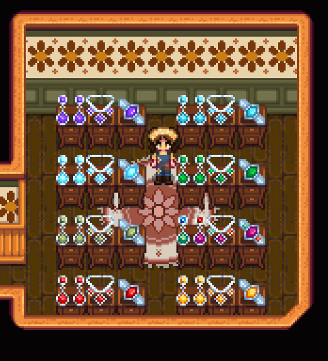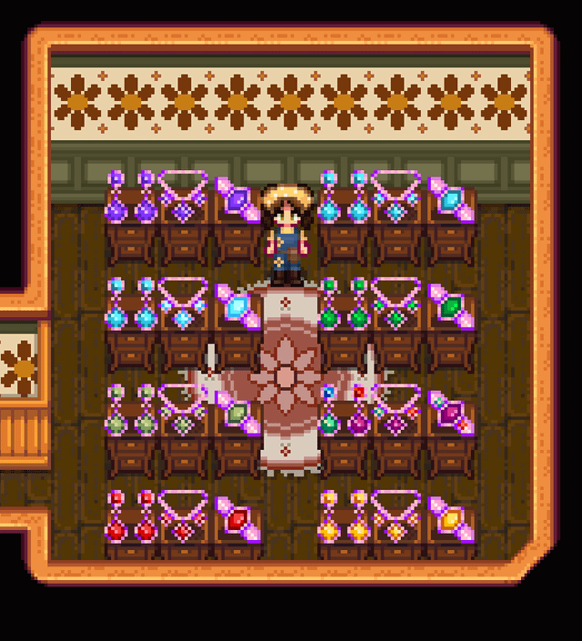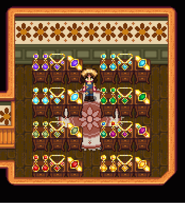 This mod took a long time for me to make and I'm very proud of it, so I figured I'd promote it a little! It lets you make jewelry from all the extra gems you probably have lying around! It comes with universal gift tastes and specific gift tastes and dialogue for all Vanilla and SVE villagers! Will add more for other modded villagers later, like Ridgeside, East Scarp, and Sunberry! Thank you for taking the time to check it out! <3