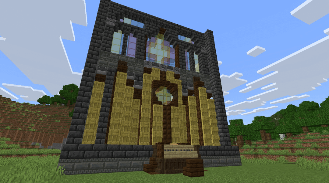 Not too bad, but it barely looks like pipes, id use bamboo blocks instead. Moreover, there shouldn’t be a window in the middle of the organ, especially when the 16, 32 (bass) pipes are there. It’s either you take away the window or you remove the pipes below it.