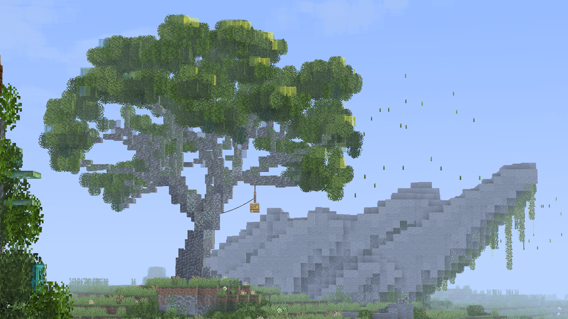 build a tree to mark where my bee farm is, the rock in the background also has a moss farm inside by British05 Minecraft Minecraft Builds