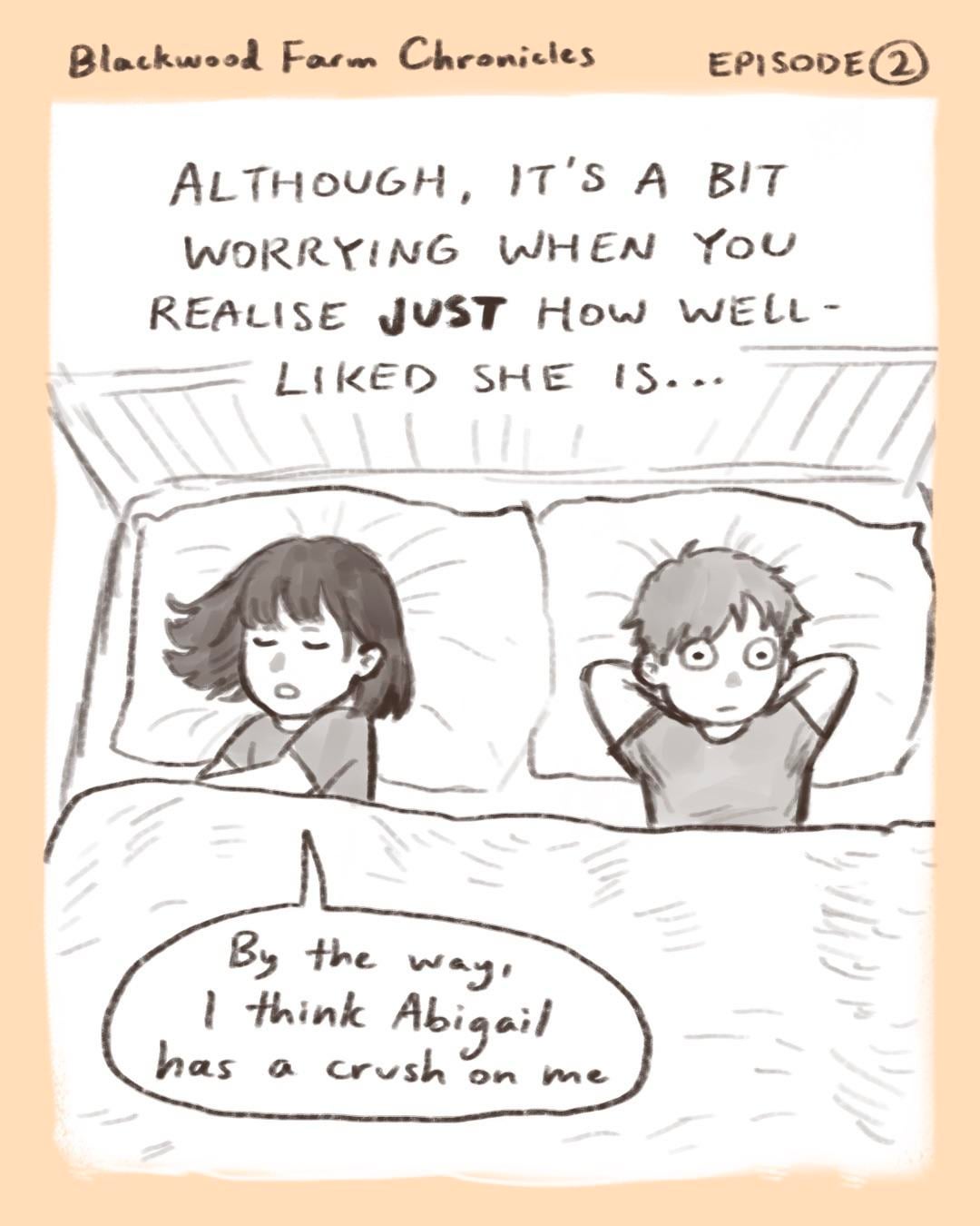 So this comic comes from the fact that I only unlocked Abigail, Maru, and Elliot’s 8 heart events AFTER my farmer had already been married to Alex for 2 years with 2 children. It was pretty awkward… (Especially Abigail’s – I had to walk my farmer back to the farm at night feeling like I’d just done something suspicious 😭) Like, guys you know you’re hitting on a married woman right? Lol