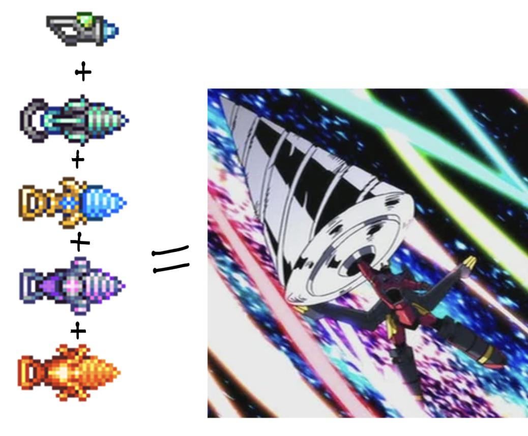 Also as another crazy idea.. What if this drill weapon also could be combined with Drill Mount unit, and then it will form a mini-mech mount (could also be a reference to TTGL) which combine both effects?