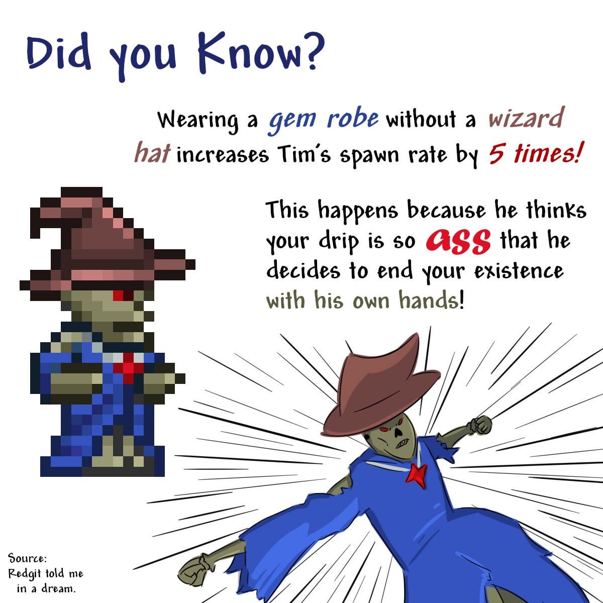 M5R2002 on March 14, 2026 3:28 pm The increased spawn rate is true tho. It probably happen so you can complete the set (I made him appear in [my comic](https://www.webtoons.com/en/canvas/lets-play-terraria-together/list?title_no=1095809) after the mage got the robe for this reason) https://preview.redd.it/9ztkg2rc41pg1.png?width=794&format=png&auto=webp&s=bd21ba455f56a5830a79d1c854f7f89a0dc5c81b