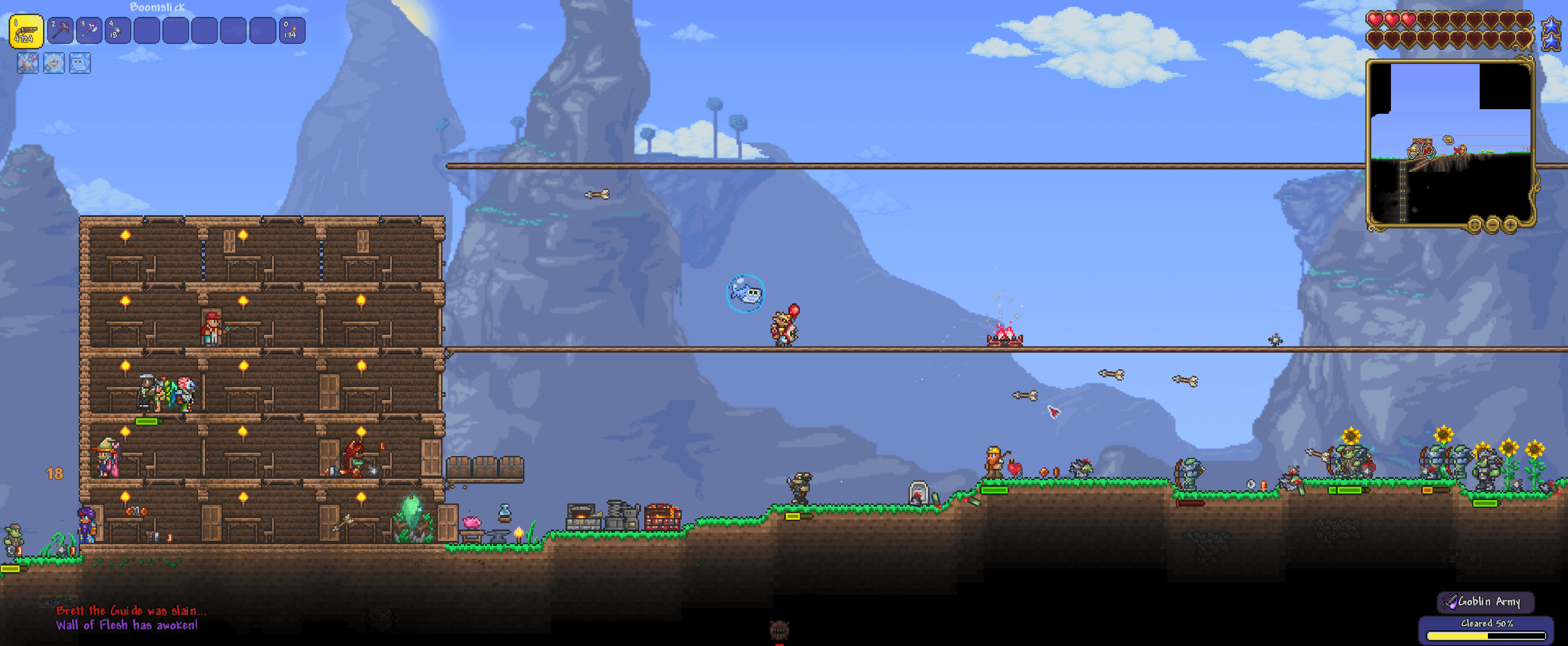 The guide fell down my hellavator and spawned the wall of flesh in the middle of the goblin army by Calm-Veterinarian519 Terraria