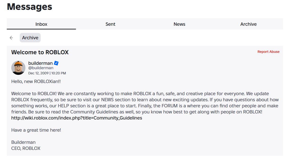 I have this same one from 2011, and slightly altered in 2012. Never understood why they got rid of the messages feature. At one point Roblox was dedicated to teaching kids how to use social media safely, and messages were a core part of that because they felt like email. I learned how to do emails through Roblox- seriously, and it’s actually benefitted me now. Who would’ve thought. 😆