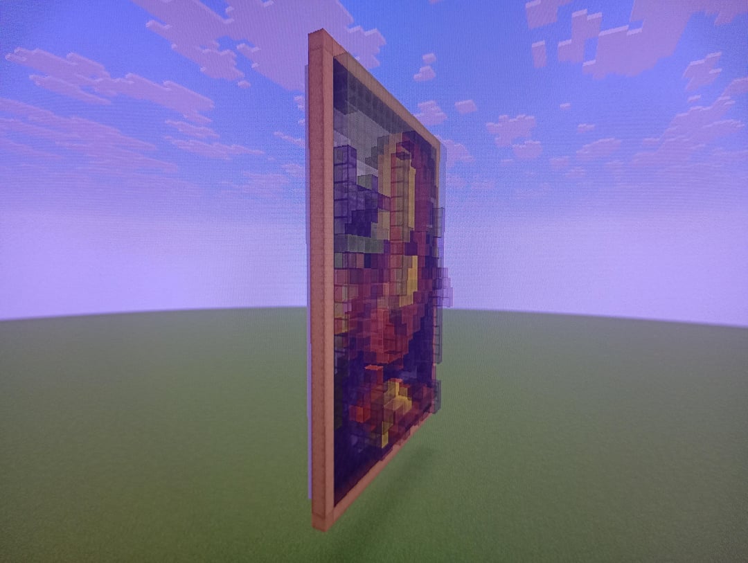 so i randomly had the idea to try and make art by overlapping stained glass, which would give me a higher range of colors to use. i also noticed i haven't seen anyone else try to do this, so that also interested me to try it out (had to take the photo with my phone since my wifi isn't connecting to my pc atm)