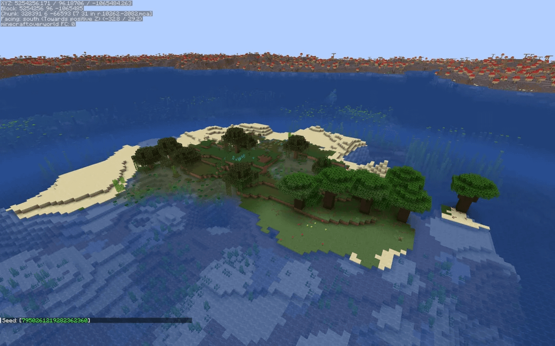 Java only due to extreme distance. Seed: 7950261219282362360 Island 1 (Swamp and Dark Forest): 5254288 ~ -1065444 Island 2 (Beach): 12594320 ~ 19905984 Found with custom code: https://github.com/estradying/ReMIRRORS by estradying Minecraft Minecraft Seeds