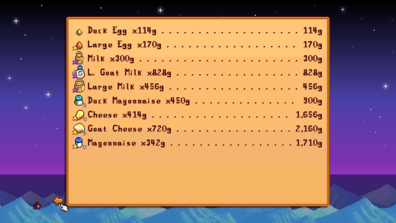 I recommend getting the foraging upgrade that makes any foragable good iridium quality so that truffles from pigs are always iridium. They sell for close to the same as truffle oil and you won’t need time nor resource investment to it!